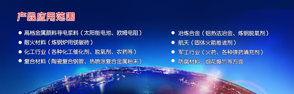 公司產(chǎn)品主要有八大類(lèi):1、高檔金屬顏料導(dǎo)電漿料(太陽(yáng)能電池、歐姆電阻)、2、耐火材料(煉鋼爐用鎂碳磚)、3、復(fù)合材料(陶瓷復(fù)合鋼管、熱噴涂復(fù)合金屬粉末)、4、化工行業(yè)(各種化工催化劑、脫氧劑、農(nóng)藥等)、5、冶煉合金(鋁熱法冶金、煉鋼脫氧劑)、6、航天(固體火箭推進(jìn)劑)7、軍工行業(yè)(火藥、各種彈藥填充劑)8、防腐材料、煙花爆竹等方面。現(xiàn)已成為國(guó)內(nèi)球形鋁粉產(chǎn)品行業(yè)的領(lǐng)跑者,我們?cè)附哒\(chéng)為全國(guó)各地耐火、農(nóng)業(yè)、及鋁深加工企業(yè)廠(chǎng)家提供服務(wù)。公司與國(guó)內(nèi)數(shù)名耐材技術(shù)專(zhuān)家合作提供技術(shù)支持,幫助解決各種技術(shù)問(wèn)題。凡我公司售出產(chǎn)品,一經(jīng)發(fā)現(xiàn)質(zhì)量問(wèn)題,實(shí)行包退、包換、包負(fù)責(zé)。質(zhì)量是我公司的生命,誠(chéng)信是我公司的宗旨,請(qǐng)業(yè)主放心使用本公司產(chǎn)品。誠(chéng)信是亞星化工之本。是亞星人處事立業(yè)的行為準(zhǔn)則,誠(chéng)信意味著亞星人在交往中恪守諾言,至真至誠(chéng)。